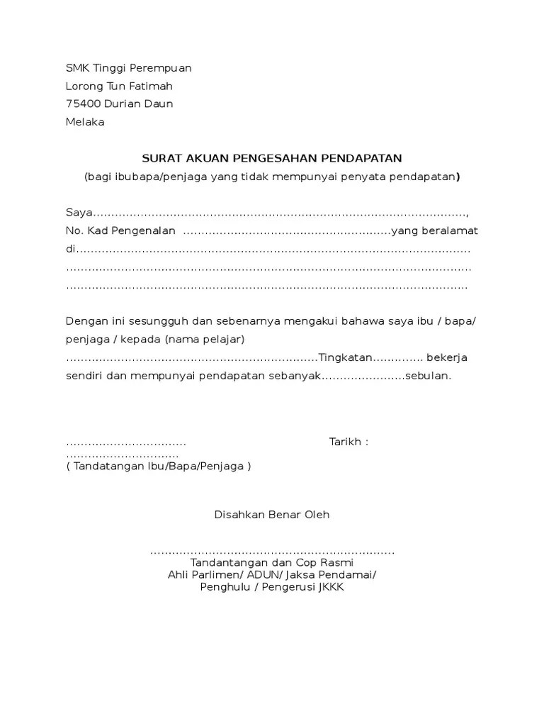 Surat akuan pengesahan pendapatan tersebut adalah merupakan dokumen pengganti kepada penyata pendapatan pekerjaan mereka. Feb 28, 2021 · 2 log masuk akaun ezhasil anda. Kalau berbicara sastra, terus teranga saya kurang memahami.